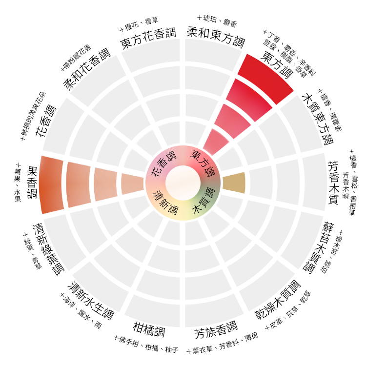 這系列的香氣風格清新、直接、乾淨又富有質感。