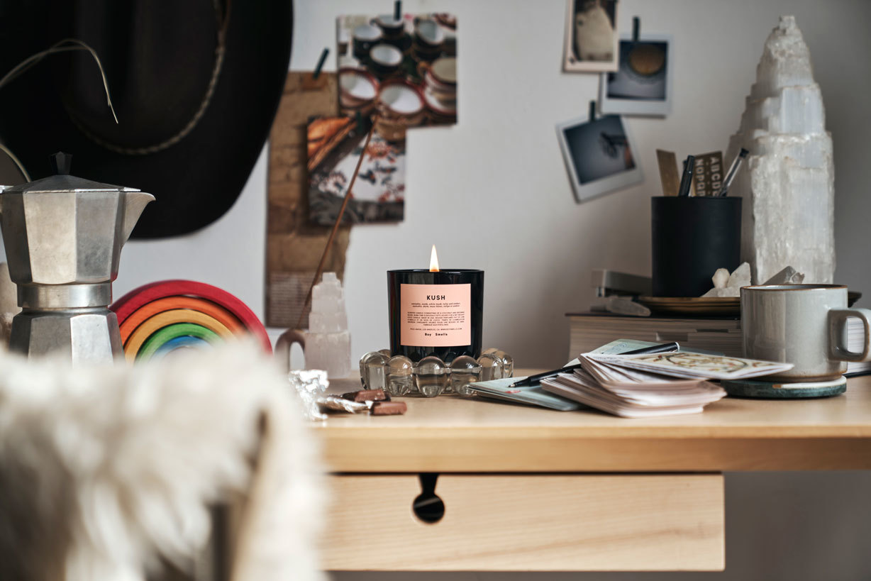 從研發、調香、灌蠟、貼標籤,皆於美國洛杉磯Boy Smells創辦人家裡,全程手工製造。