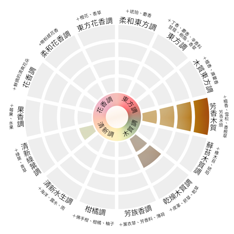 香氣濃郁度:清淡 淡雅 適中 馥郁
