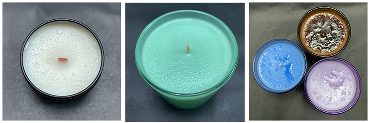 若蠟燭表面產生珠狀液體,部分染色蠟燭產生表面液體色差為溫差關係,屬正常現象可照常使用