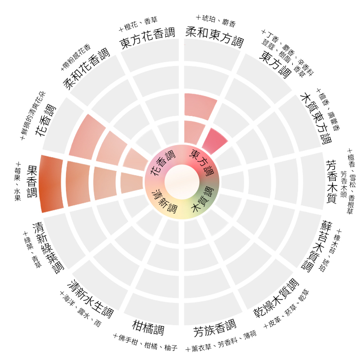 花果香調/紫外線、粉紅胡椒、玫瑰、柑橘、水蜜桃皮、琥珀、橡木苔