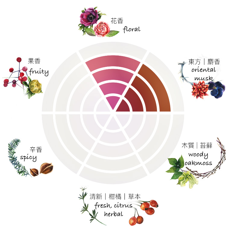 香氣是屬於有點奶味的東方花香調,前調香氣不太明顯,主要香氣來源為香草豆,再來是花香。整體香味屬於馥郁,放在桌上即可聞到陣陣香味飄散。
