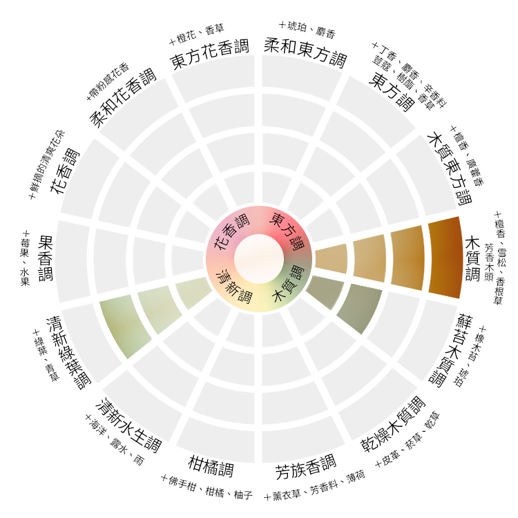這系列的香氣風格清新、直接、乾淨又富有質感。