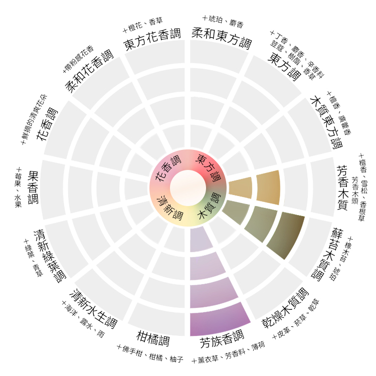 這系列的香氣風格清新、直接、乾淨又富有質感。
