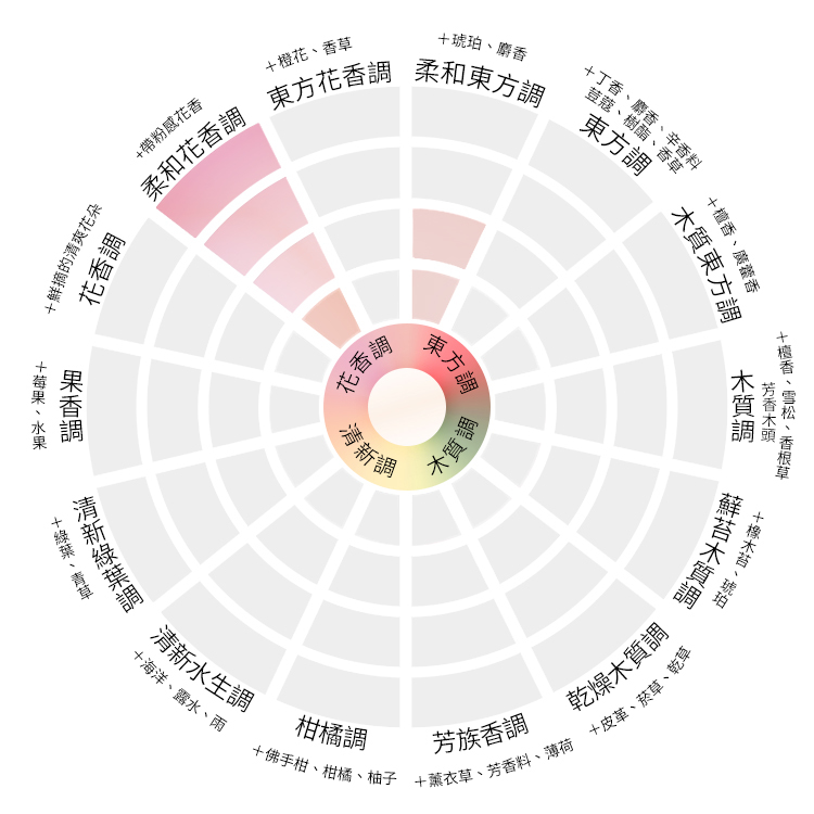 這系列的香氣風格清新、直接、乾淨又富有質感。