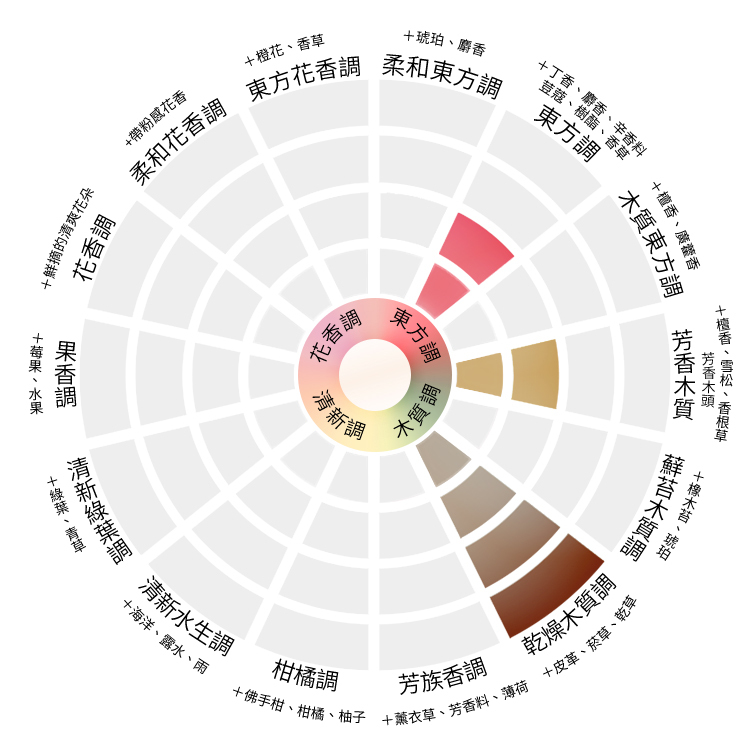 這系列的香氣風格清新、直接、乾淨又富有質感。