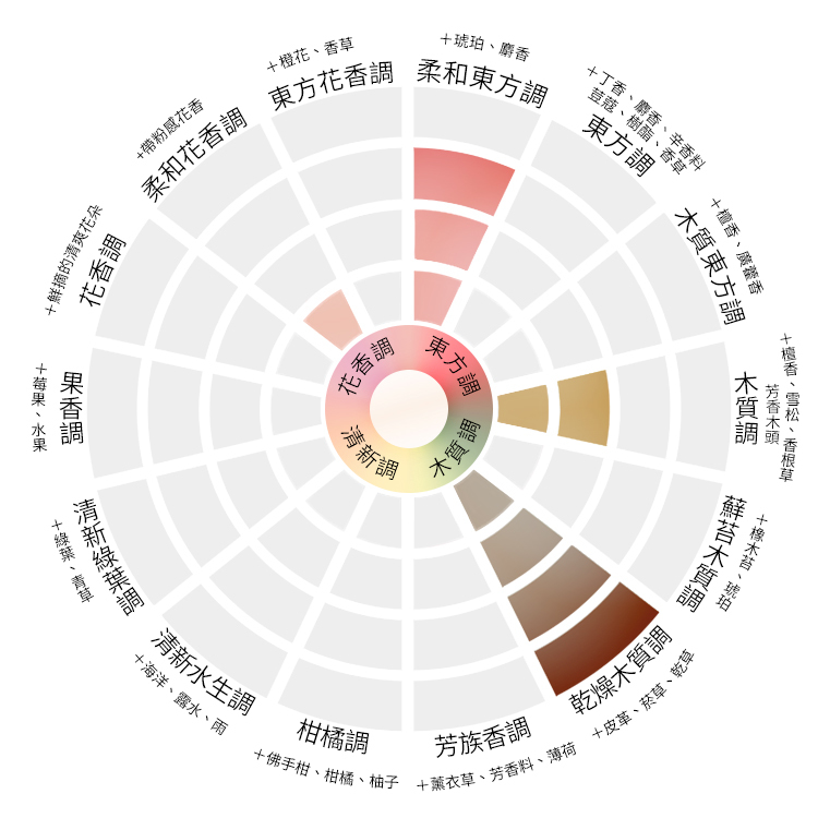 整體香氣聞起來是優雅的皮革加上麝香的柔軟,有點奢華、絲絨感。雖然有皮革的氣味,但並不是粗曠粗暴的很重的皮革味,而是經過修飾在一片花草中透露出的高級皮革感。中性偏男性一點點的味道,很有質感。