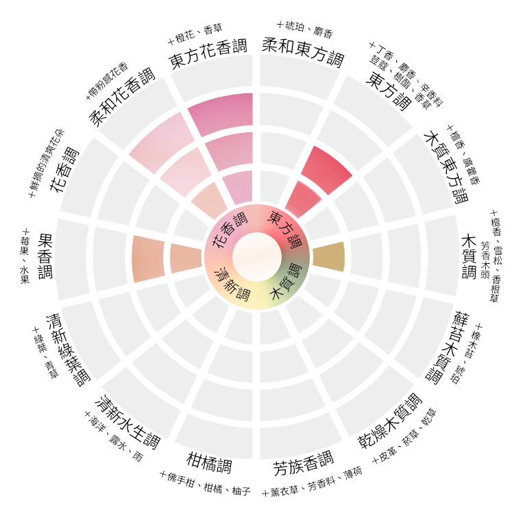 多汁的無花果和芳香的綠葉香氣,還有一點點植物乳香感,後段有一絲潔白的茉莉花香氣。整體聞起來帶有一絲棉柔感,還有一種很乾淨的感覺,腦中直覺聯想到白柔柔的棉花