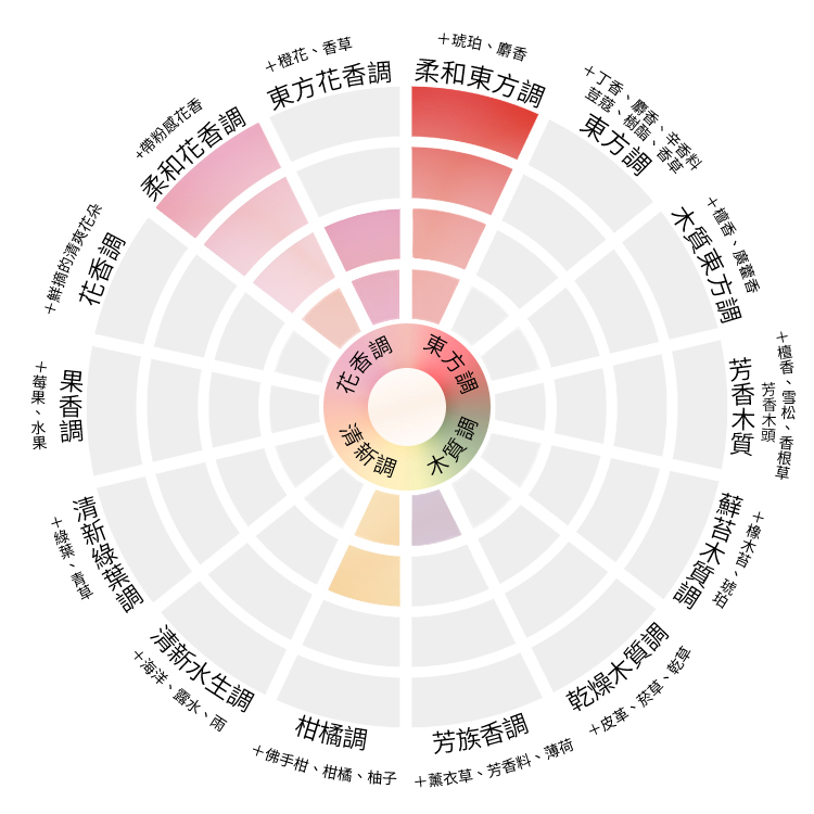 前調是較清爽的柑橘與芳族花香結合,基底是溫暖又撩人的琥珀、香草、沒藥以及木質香氣,聞起來以基底的味道最為明顯,再帶有一點點像剛洗完澡的肌膚皂香,迷人、成熟又慵懶地的味道。