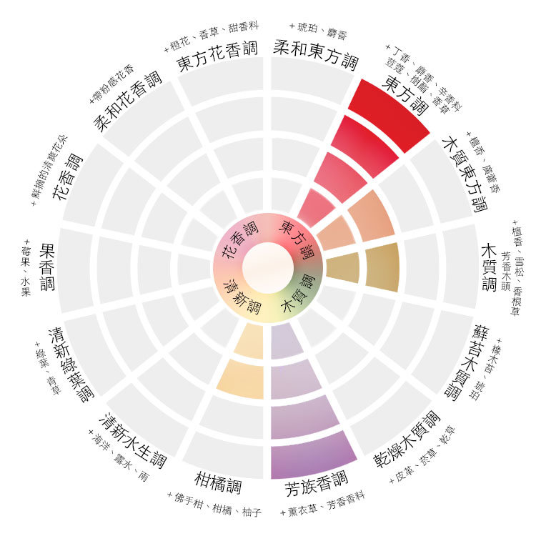 經典的辛香調香氣,以迷迭香以及清透的尤加利作為香調開頭,中後味是稍微強烈的樟腦、荳蔻,讓這股香氣有著絕對存在感!